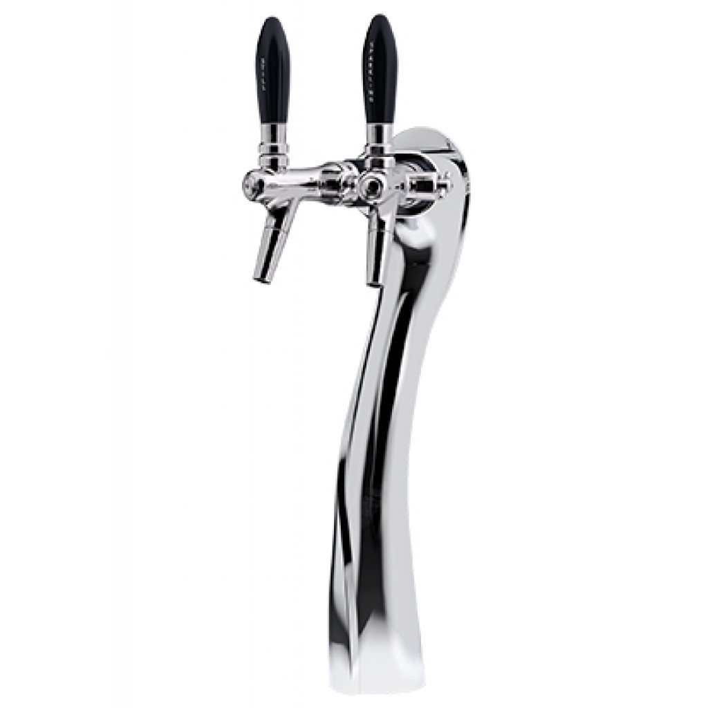 Tappetårn i rustfritt stål med to tappehendler. Albatross 2