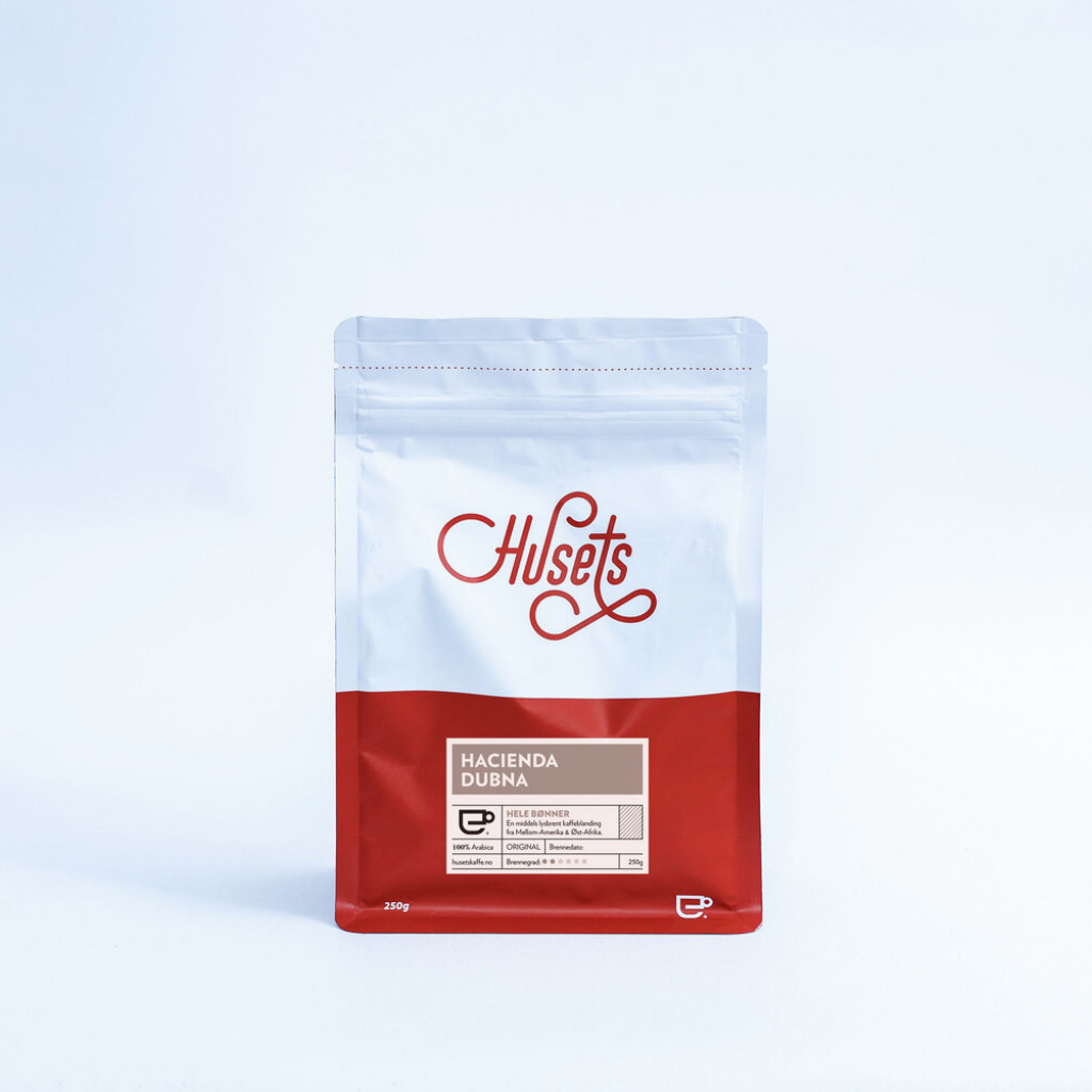 Husets Hacienda Dubna – En lettdrikkelig middels lysbrent blanding med kaffebønner fra Mellom-Amerika & Øst-Afrika.